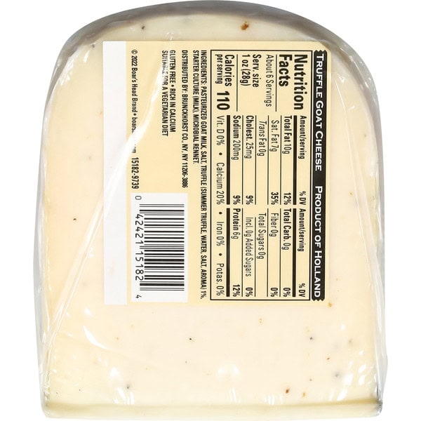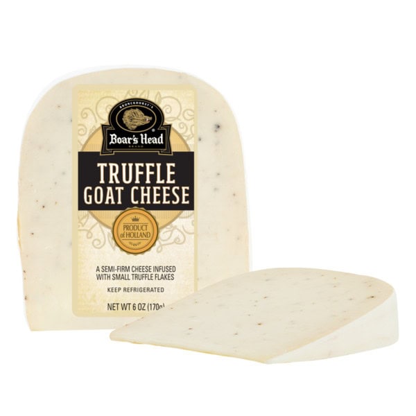 Made in the lowlands of Holland with fresh goats’ milk, this semi-firm white cheese is infused throughout with delicate flakes of truffle to add complexity. Boar’s Head® Truffle Goat Cheese is slightly sharp and accented with the earthy, intense flavor of truffles.
