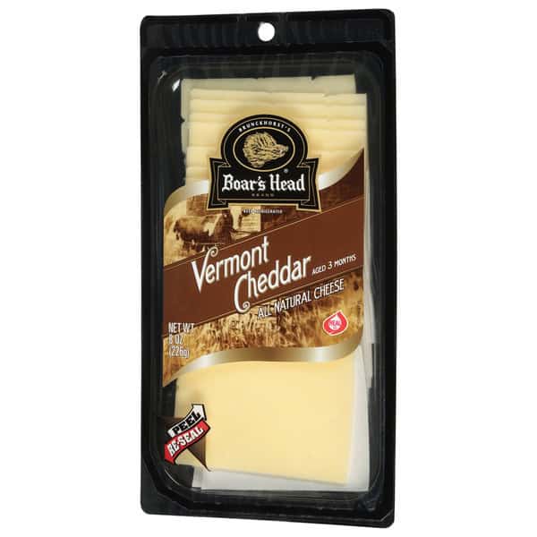 Made with milk sourced from regional family farms, this cheese has a pleasantly mild, rich flavor and smooth, creamy texture. Boar’s Head® Vermont Cheddar Cheese is aged for three months to achieve the classic Cheddar taste.