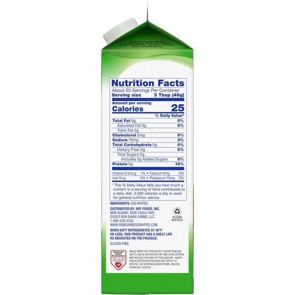 Bob Evans 100% liquid egg whites are delicious scrambled, as an omelet or as a tasty protein fruit drink! They are also great for french toast, quiche, meatloaf, cakes, frostings, cookies, and batters and coatings for baking!