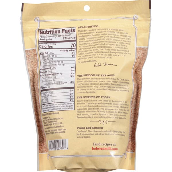 • MILLED TO PERFECTION: Bob’s Red Mill is cold milled to preserve the freshness and nutritional integrity of its precious oils; this proprietary milling process protects the omega-3s and other nutrients, ensuring you get all the goodness of whole flax with every scoop.
