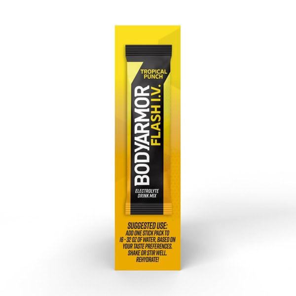 Whether you’re hitting the gym, running errands, or jumping on an airplane, BODYARMOR Flash I.V. Tropical Punch electrolyte powders provide portable hydration anywhere you need it. Pair Flash I.V. Sticks with BODYARMOR SportWater for an unbeatable hydration combo, and never worry about dehydration slowing you down. Enjoy the convenience of hydration wherever you are, and stay fueled and refreshed throughout your day.