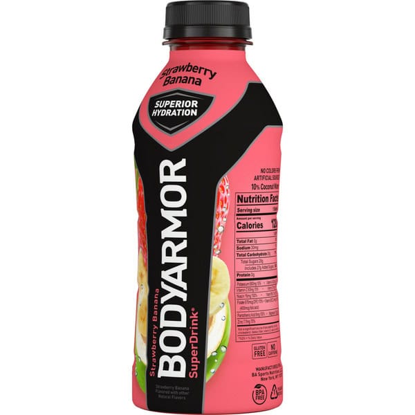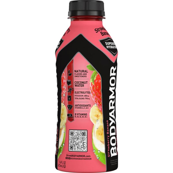 • 16 fl oz bottle of BODYARMOR Sports Drink Strawberry Banana — hydration’s MVP