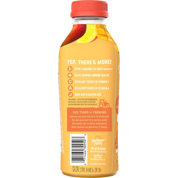 It starts with the world’s most beloved stone fruit. Our mango is grown in humid, tropical climates for natural sweetness. We add the perfect dose of banana, apple and orange to round out its exotic flavor. Perfect for breakfast on-the-go or a mid-day pick-me-up, this Bolthouse juice smoothie is as nutritious as it is delicious!