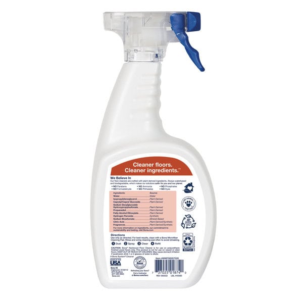Flooring contractors agree, when looking for the best solution to care for hardwood floors use Bona Hardwood Floor Cleaner. Each Bona Floor Cleaner is uniquely formulated to care and protect your floor with it’s gentle, pH neutral formula. The residue-free, fast drying solution cleans wood floors by gently removing dust, dirt and grime to reveal the floor’s natural shine and beauty. Crafted with plant-derived ingredients and containing 95% USDA certified biobased content for a more sustainable cleaning experience. Available in Cedar Wood, a blend of precious woods, freshly picked herbs and highlights of peony and eucalyptus. Love your floors with Bona. Waterbased solutions & Safer Choice certification ensure a safer product for people, pets, and the planet.