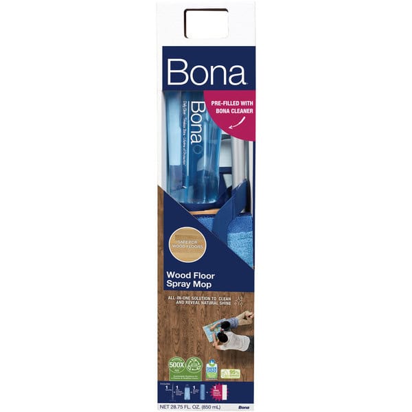 The Bona Spray Mop for Hardwood Floors is an all-in-one solution to clean and reveal the natural shine of your floors. Includes Bona’s uniquely formulated Hardwood Floor Cleaner to care and protect your floor with it’s gentle, pH neutral formula. Crafted with plant-derived ingredients and containing 95% USDA certified biobased content for a more sustainable cleaning experience. Equipped with an extra-large mop head and sturdy handle to make cleaning quick and seamless. The retractable hook makes storage easy. The Bona Spray Mop includes a refillable mop cartridge and a washable and reuseable microfiber cleaning pad.