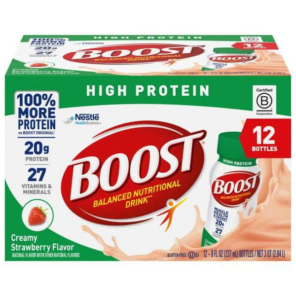 No artificial sweeteners & colors. Muscle health & energy (Boost High Protein Balanced Nutritional Drink contains 20 g protein for muscle health and 240 nutrient-rich calories with 8 B-vitamins to help convert food to energy). Balanced Nutritional Drink to help you be your best! Immune Support: Vitamin C & D, zinc, iron & selenium. Key nutrients for immune support. Boost Nutritional Drinks help you get more out of life today and tomorrow with tailored nutrition to help meet your needs. Vitamins, protein, minerals. Discover key nutrients found in Boost nutritional drinks to help support the immune system. Contains no fruit. Suitable for lactose intolerance.
