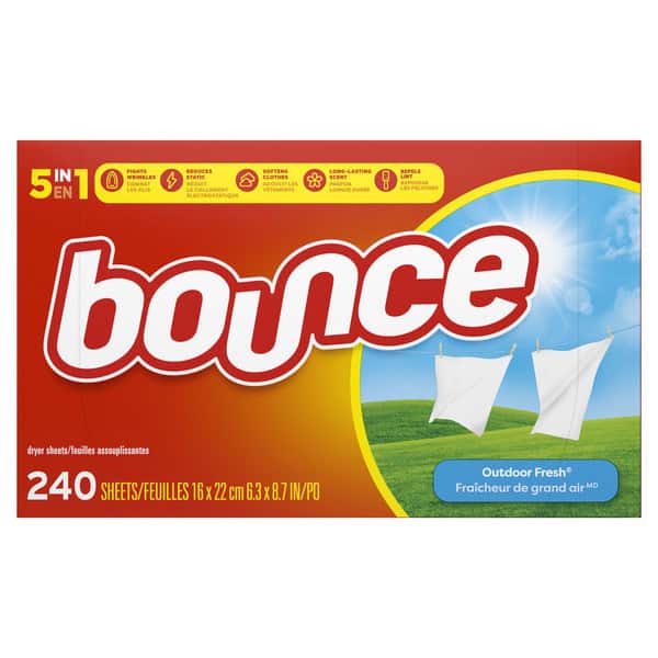 With Bounce Outdoor Fresh Dryer Sheets, static cling doesn’t have to be a thing. Bounce Dryer Sheets help prevent static build up that occurs in the dryer so you can look and feel your best. America’s #1 dryer sheet brand* is tough on wrinkles, too. Toss a sheet in the dryer to keep clothes looking their best and reduce wrinkles so your clothes will be ready to wear right away, making you look and feel confident. Bounce Outdoor Fresh Dryer Sheets don’t stop there. From the moment you pull your laundry out of the dryer, Bounce Dryer Sheets give your clothes a fresh and lasting scent and a noticeably soft feel. Way less static, fewer wrinkles, softer fabrics, and an outdoor fresh scent is that easy. Toss in two Bounce Dryer Sheets for your average loads to iron less, fight more static, and add more softness and freshness. One will do for small loads, and if you’re catching up on laundry and have an extra large load, toss in three! You can also use Bounce Dryer Sheets around the house. Tuck them in drawers or closets, put them in gym bags and suitcases, or stash them at the bottom of your trashcan to bring that Bounce Outdoor Fresh scent you know and love out of the dryer and into your home.