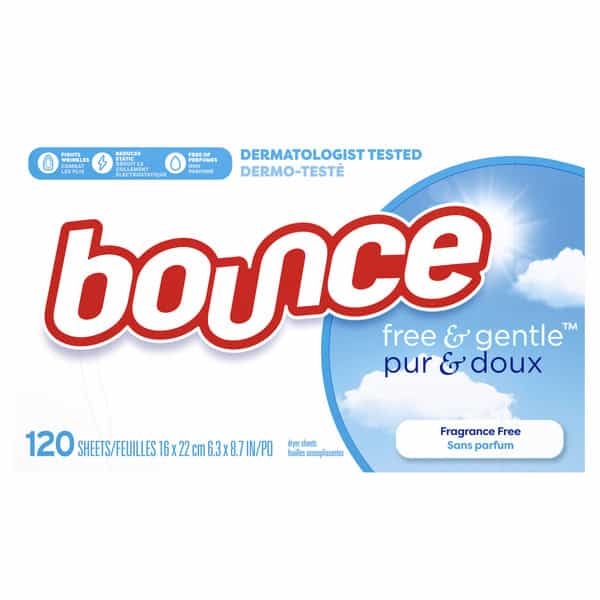 Sensitive skin? Bounce Free and Gentle gets that and wants to make sure your dryer sheets leave you feeling and looking good. Bounce Free and Gentle Dryer Sheets are gentle on your skin but tough on static and wrinkles. Dermatologist-tested, hypoallergenic, and free of any dyes or perfumes, you can rest assured that Bounce Free and Gentle Dryer Sheets are just right for your sensitive skin. Bounce Dryer Sheets help prevent static build up that occurs in the dryer so you can look and feel your best. America’s #1 dryer sheet brand* is tough on wrinkles, too. Toss a sheet in the dryer to keep clothes looking their best and reduce wrinkles so your clothes will be ready to wear right away, making you look and feel confident. From the moment you pull your laundry out of the dryer, Bounce Free and Gentle Dryer Sheets will give your fabrics a noticeably soft feel. Getting way less static, fewer wrinkles, and softer fabrics is easy. Toss in two Bounce Dryer Sheets for your average loads to iron less, fight more static, and add more softness. One will do for small loads, and if you’re catching up on laundry and have an extra large load, toss in three!*based on sales