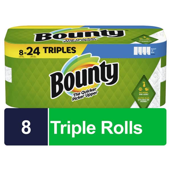 • Pack contains 8 Triple Rolls of white Bounty Select-A-Size Paper Towels