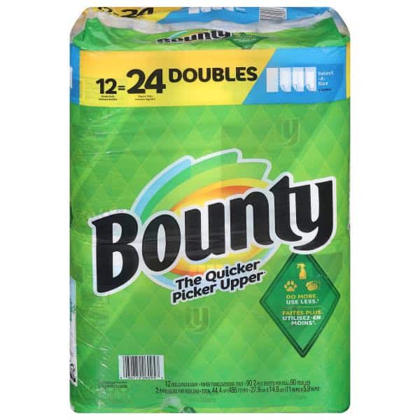 • Pack contains 12 Double Rolls of white Bounty Select-A-Size Paper Towels