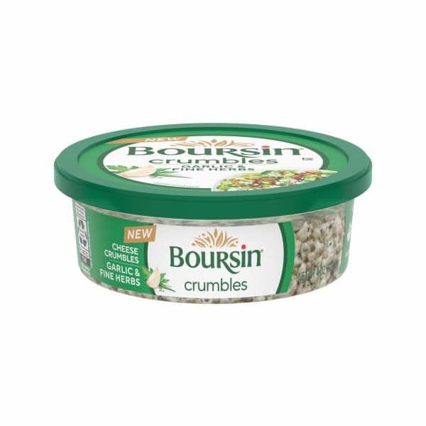• Transform your everyday meals with creamy, flavorful Boursin® Garlic & Fine Herbs Cheese Crumbles. Elevate your go-to salad, your favorite flatbread, and even taco Tuesday.
