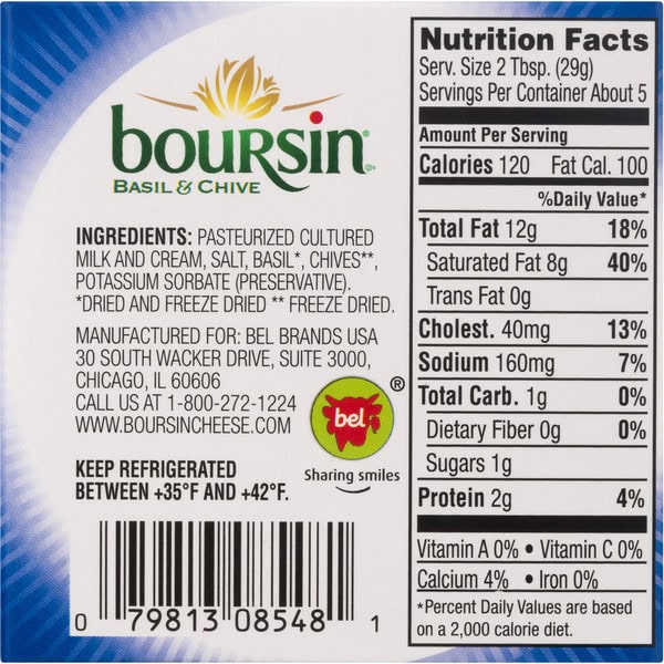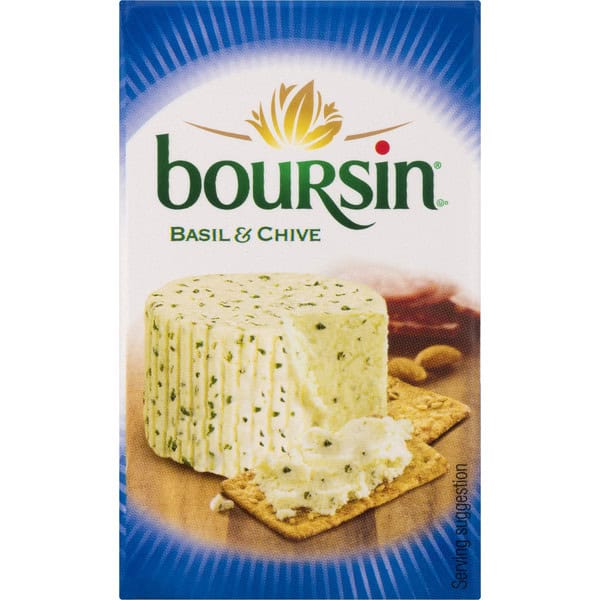 Give your guests a taste of spring all year long with the delicate flavor of sweet basil and zesty notes of chives combined with authentic gourmet cheese. Perfectly balanced with garden-fresh herbs, Boursin® Basil & Chive Cheese’s signature creamy and crumbly texture brightens up any family gathering and complements any dish, crudité, or cheese plate.