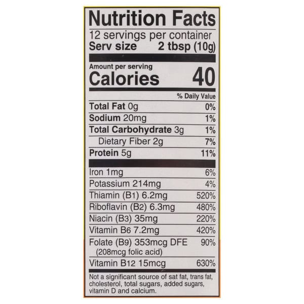 Dried Yeast, Niacin, Pyridoxine Hydrochloride (vitamin B6), Thiamin Hydrochloride (vitamin B1), Riboflavin (vitamin B2), Folic Acid (vitamin B9), Cyanocobalamin (vitamin B12).