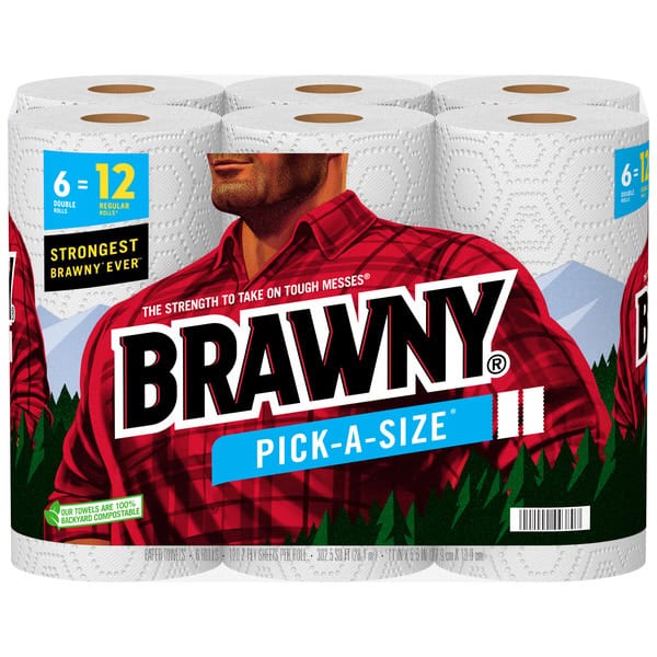 Brawny® Pick-A-Size® Paper Towels are our thickest and most absorbent paper towels yet—2x more durable vs. the leading store brand mainstream towel. That means you get the superior versatility you need to help tackle tough messes in convenient full- and half-sheet options. With our strongest Brawny® ever, you can handle any household mess with ease. From meal prep and wiping down kitchen and bathroom surfaces to everyday cleanup and more, our durable paper towels give you the flexibility of two sheet sizes to choose just what you need for a variety of tasks. Grab the right size for your cleaning needs and waste less paper while conquering cleanup time. The half-sheet size is ideal for small spills and drips, while the full-size option can help you manage major splashes and more. That also means the rolls last longer, with less paper wasted on smaller tasks. Brawny® Pick-A-Size® Paper Towels are more absorbent than ever, so you can manage even the toughest messes. These paper towels are made from trees we work with our suppliers to replenish and our sourcing practices are certified by the Sustainable Forestry Initiative® Fiber Sourcing Standard (SFI-000007). Handle whatever life throws your way with longer-lasting rolls that get the job done, every time. Stock up and save by ordering Brawny® paper towels in bulk!