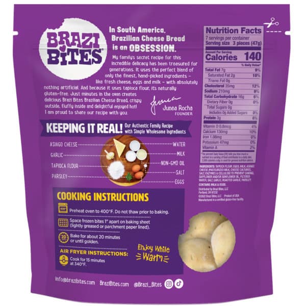 Brazi Bites creates joyful moments through Latin-inspired foods that are naturally gluten free and instantly loved. Just 20 minutes in the oven creates these delicious cheese bread bites that are crispy on the outside, fluffy on the inside, and perfect as a snack or appetizer.