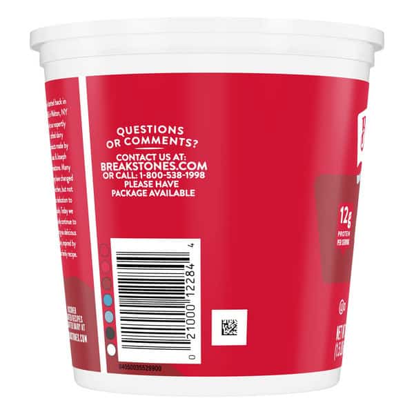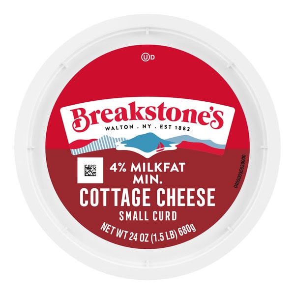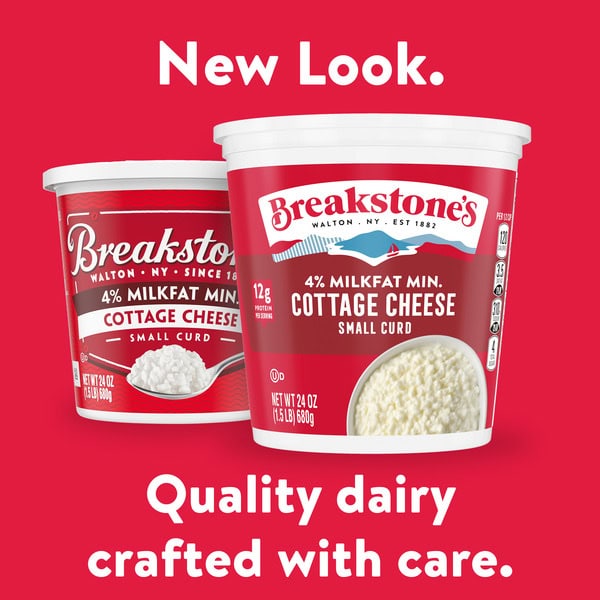 Breakstone’s 4% milkfat small curd cottage cheese is delicious, creamy, and packed with protein. Since it’s origin in 1882 in Walton New York, each cup of Breakstone’s cottage cheese is a celebration of craftsmanship and expertise evident in hand cut curds wrapped in a rich dressing for a fresh and delectable dairy experience. Each serving of Breakstone’s 4% milkfat cottage cheese has 12g of protein and only 120 calories, making it a better choice for your meals. Enjoyed on its own, as a side dish, a protein snack for lunch or an ingredient in a variety of recipes, Breakstone’s cottage cheese is extremely versatile. Explore a variety of breakfast options using Breakstone’s 4% milkfat cottage cheese as a parfait bowl topped with fruits, on a toast with sweet or savory toppings, or simply blend with fruits or greens for a protein packed smoothie. You can go a step further and use Breakstone’s cottage cheese to make pasta dishes, salads, or even ice cream. Available in a 24oz container, Breakstone’s 4% milkfat cottage cheese can be stored in the fridge and enjoyed for a week once opened, giving you the opportunity to enjoy it in different ways. With over 140 years of heritage, Breakstone’s pays tribute to cultured dairy by bringing delicious high-quality dairy to your home., ● One 24oz tub of Breakstone’s 4% milkfat small curd cottage cheese, ● Hand cut curds in a rich creamy dressing for a delicious cultured dairy experience, ● Rich in protein, each serving of Breakstone’s 4% cottage cheese has 12g protein and 120 calories, ● Enjoy cottage cheese snacks, sweet or savory breakfast toasts, or make a parfait, dessert, and even ice cream, ● Breakstone’s is a heritage brand established in 1882 in Walton NY known for delicious dairy products