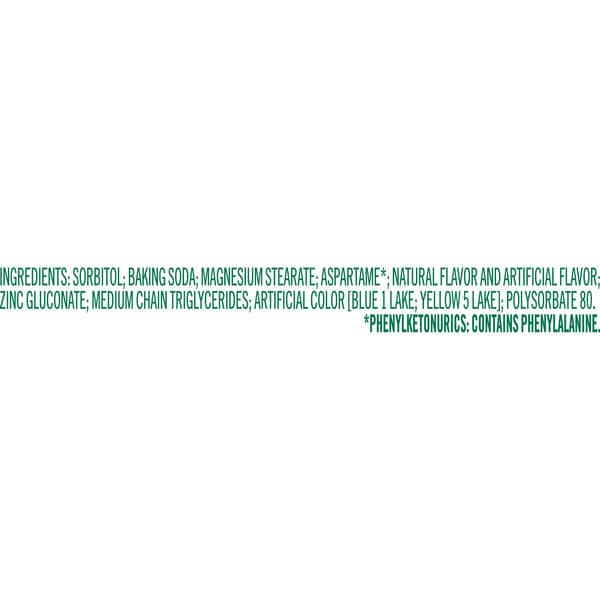 Sorbitol; Baking Soda; Magnesium Stearate; Aspartame *; Natural Flavor And Artificial Flavor Zinc Gluconate; Medium Chain Triglycerides; Artificial Color [blue 1 Lake; Yellow 5 Lake]; Polysorbate 80, *phenylketonurics: Contains Phenylalanine