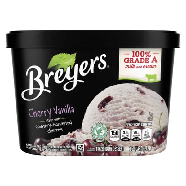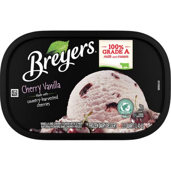 • Take juicy cherries and add smooth and creamy vanilla dessert for a great Breyers Cherry Vanilla! Now that’s a refreshingly delicious family-time frozen dessert
