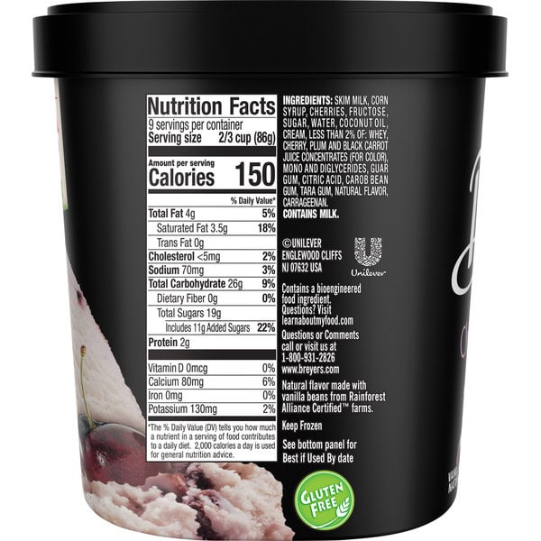 Skim Milk, Corn Syrup, Cherries, Fructose, Sugar, Water, Coconut Oil, Cream, Less Than 2% Of: Whey, Cherry, Plum And Black Carrot Juice Concentrates (for Color), Mono And Diglycerides, Guar Gum, Citric Acid, Carob Bean Gum, Tara Gum, Natural Flavor, Carrageenan