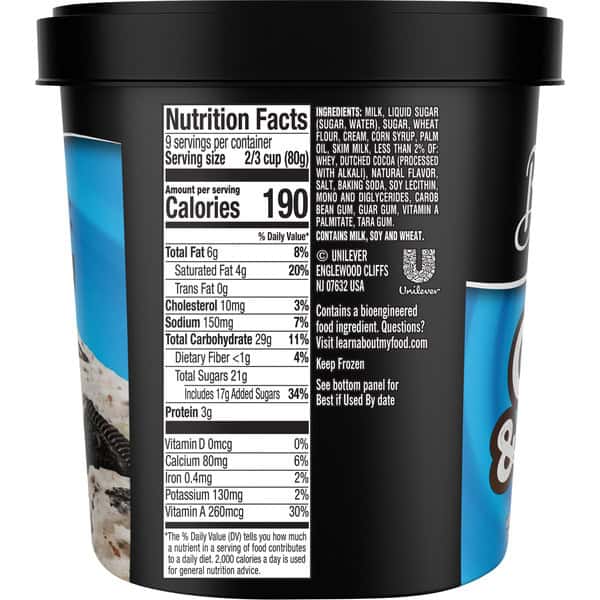 Breyers vanilla and heaps of crème-filled chocolate cookie pieces? Yes, please! Breyers Cookies and Cream Frozen Dairy Dessert combines your love of Breyers vanilla with chocolate cookie pieces. In this delicious frozen dessert, rich, creamy vanilla goodness surrounds chunks of chocolate crème-filled cookies. It’s the milk and cookie break we know you’ve been craving! Even better, this delicious frozen dairy dessert is jam packed with crème-filled chocolate cookie pieces. When William Breyer started his small ice cream business in Philadelphia in 1866, he based his recipes around simple and pure ingredients. More than 150 years later, we still honor that same philosophy. We always start with high-quality ingredients like fresh cream, milk, and sugar and combine them with naturally sourced colors and flavors for wholesome goodness. This combination is how we create flavors you know and love. Our dairy comes from American farmers who produce 100% Grade A milk and cream from cows not treated with artificial growth hormones*. Want even more cookie goodness? Try our new Double Cookie Crumble frozen treat. It’s the perfect trio of sweet cream Breyers, chunks of crème-filled chocolate cookies and a yummy chocolate cookie swirl. *The FDA states that no significant difference has been shown between dairy derived from rBST-treated and non-rBST-treated cows.
