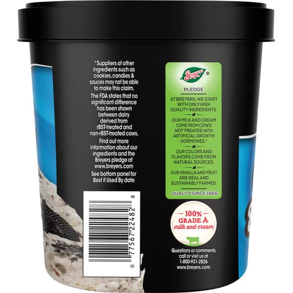 • Breyers uses the highest-quality ingredients in all of our frozen desserts, like 100% Grade A milk and cream