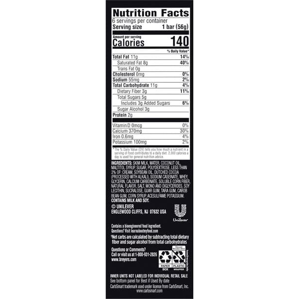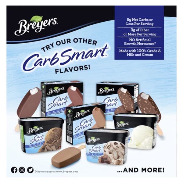 • Breyers CarbSmart proves that fewer carbs doesn’t mean less taste. Make sweeter family moments while keeping carb-conscious with this delicious frozen dessert