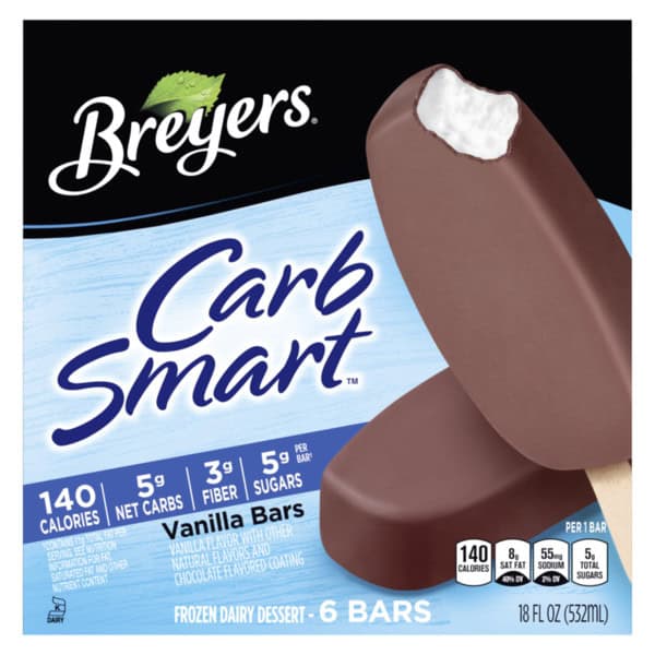 • The perfect frozen dessert bar for your carb-light lifestyle: Breyers CarbSmart Vanilla Bars – delicious frozen dessert for 5g net carbs, and 5g of sugar* per serving