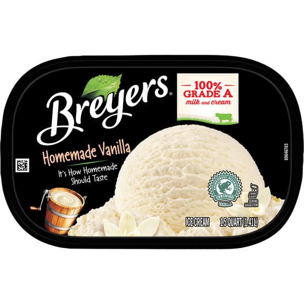• Breyers Homemade Vanilla Ice Cream is made with fresh cream, sugar, milk, and egg yolks for a thick and smooth homemade taste