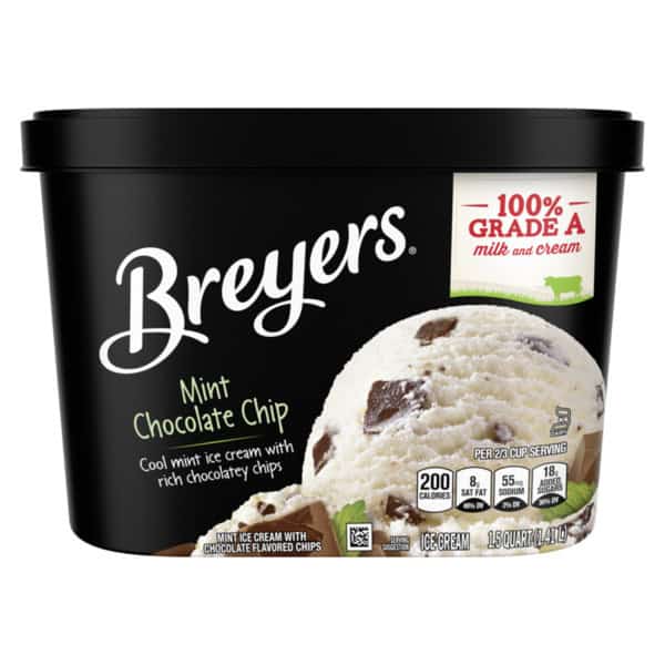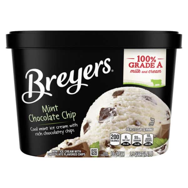 • Breyers uses the highest-quality ingredients in all of our ice cream recipes, like real mint extract and 100% Grade A milk and cream