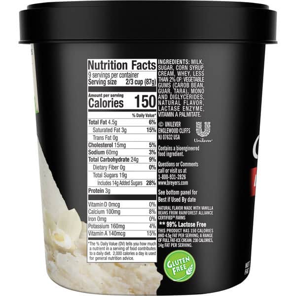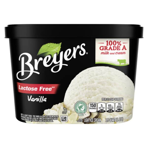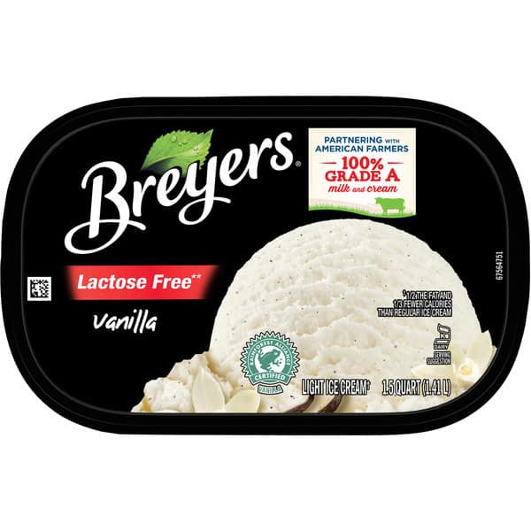Have a lactose sensitivity? No problem. Try our Breyers Lactose-Free Vanilla Ice Cream. It’s the same great vanilla, just without the lactose. A creamy, delicious low-fat ice cream made with real vanilla bean specks. Our low-calorie ice cream contains 1/3 fewer calories than regular ice cream. Can you count all the specks in your spoon? While you’re counting, imagine those marvelous specks as vanilla pods growing in Madagascar. Our vanilla is 100% sustainably sourced and through our partnership with Rainforest Alliance, your Breyers Lactose-Free Ice Cream is also supporting farmers and their families in Madagascar. We believe that the quality of our ingredients makes the delicious vanilla frozen dessert, and that’s why we follow the spirit of William Breyer’s Pledge of Purity, which he started in 1866. Back in his day, he made a stand to use only the best milk, cream, sugar, and fruit in his Breyers ice cream in Philadelphia. He would not compromise quality, and now more than 150 years later, we still follow his philosophy. We pledge to use only high-quality ingredients like colors and flavors from natural sources, 100% Grade-A milk and cream from American cows not treated with artificial growth hormones, and sustainably farmed fruit and vanilla. Try our Breyer’s Light Ice Cream and see if you agree Leave us a review at www.breyers.com. The FDA states that no significant difference has been shown between dairy derived from rBST-treated and non-rBST-treated cows.
