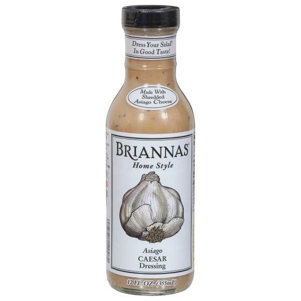 Gluten free. Vegetarian. Dress your salad in good taste! No HFCS. Asiago Caesar is a creamy dressing with shredded Asiago cheese, cracked black pepper and a signature Caesar flavor using no anchovies. This is a Caesar-lover’s Caesar, expertly crafted with only premium ingredients. Go Texan. Small Batch Since 1982 Briannas Fine Salad Dressings grew out of a desire to create superior lasting salad dressings. This homestyle approach starts with using the finest, high quality ingredients and blending each dressing recipe exclusively in small batches. Briannas.com. Facebook. Pinterest. YouTube. Instagram. For recycling tips, recipes and more, visit Briannas.com. USA.