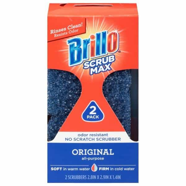 2.8 in x 2.9 in x 1.4 in. Odor resistant. No scratch scrubber. All-purpose. Rinse clean! Resist odor. Soft in warm water. Firm in cold water. Brilliant beyond the sink. Brillo helps cut thorough grime and leaves tough-to clean surfaces brilliant. Resist Odor. Open cell structure allows food to rinse out completely. Ergonomic shape. Rests comfortably in your hand for easy scrubbing. Flat edge. Allows the scrubber to stand straight for quicker drying. Pointed edge: Perfect for small, hard to clean spaces. Cookware: Silverware, dishes & bowls, bakeware, glassware, utensils, pots & pans. Indoors: Stovetops & ovens , burners, tile floors, countertops, stainless-steel sinks, glass shower doors. Outdoors: Barbecue grills, tire/wheels, machinery & tools, outdoor patio, furniture, golf clubs. Family-owned since 1908. www.Barillo.com. Questions? 1-888-4-Armaly (Mon-Fri, 8 am – 4 pm EST). Made in the USA with domestic and imported materials.