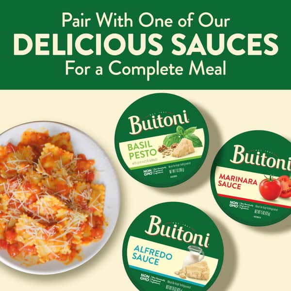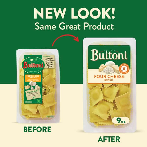 Serve up delicious pasta meals in minutes with Buitoni Four Cheese Ravioli. This convenient refrigerated package contains cheese ravioli pasta that is ready to eat in just five minutes. Buitoni Four Cheese Ravioli is filled with creamy ricotta, mozzarella, Parmesan and Romano cheeses and made with non-GMO ingredients. Ravioli is an Italian stuffed pasta that pairs well with an array of sauces and contains 11 grams of protein per serving. Top this cheese ravioli with Buitoni Marinara Sauce, mozzarella cheese and baby spinach for an easy Italian dinner, or toss them with tomatoes, fresh mozzarella cubes and Buitoni Basil Pesto for a chilled pasta salad. To cook, simply add this refrigerated pasta to two quarts of boiling water. Reduce heat and boil gently for five minutes, stirring frequently. Drain water and serve with your favorite Buitoni pasta sauce. From pasta sides to the main course, no matter how you prepare them, Buitoni Ravioli helps you get dinner on the table quickly. With this 9 oz package of Buitoni Four Cheese Ravioli, you can create crave-worthy, ready made meals in minutes. Buitoni provides convenient and delicious Italian-inspired meal solutions that give busy parents a fresh way to think about family dinner. In addition to ravioli, Buitoni’s line of refrigerated pasta includes tortellini, tortelloni, and long cut pasta shapes such as fettuccine, linguine, spaghetti and angel hair. Buitoni also offers Marinara Sauce, Alfredo Sauce and Basil Pesto. All of Buitoni’s products are made with simple, high-quality ingredients you can feel good serving for family meals.