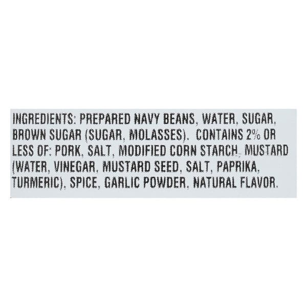 Prepared Navy Beans, Water, Brown Sugar. Contains 2% Or Less Of: Pork, Salt, Mustard (water, Vinegar, Mustard Seed, Salt, Paprika, Turmeric), Modified Corn Starch, Spice, Garlic Powder, Natural Flavor.