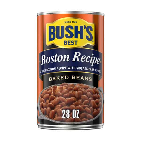 When hamburgers and hot dogs are on your table, it only makes sense that Bush’s Baked Beans go on the side. Our Boston Recipe Baked Beans use tender navy beans, slow-simmered in a rich sauce of molasses, brown sugar, pork and spices for authentic Beantown flavor. So whether you’re fixing up a summer cookout, a weeknight meal or anything in between, you can be sure you’ve got perfectly sweet beans to go along with every savory bite.
