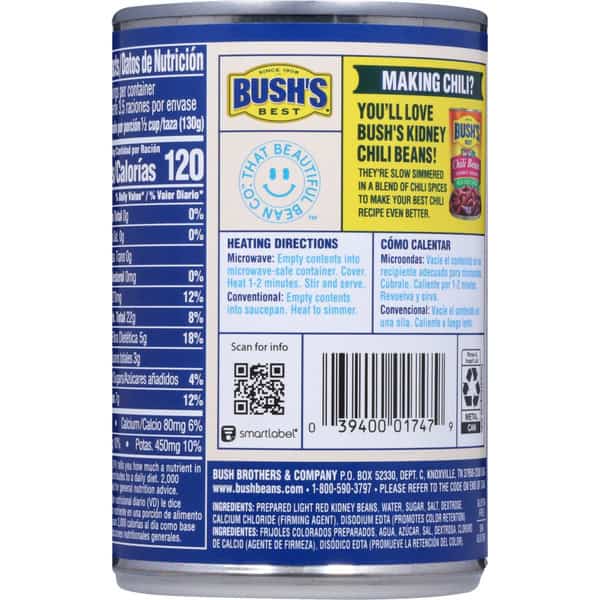 Prepared Red Kidney Beans, Water, Sugar, Salt, Dextrose, Calcium Chloride (firming Agent), Disodium Edta, (to Promote Color Retention).