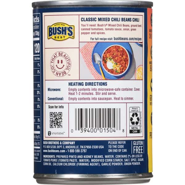 For you, chili isn’t just another dish. That’s why Bush’s Mixed Chili Beans aren’t just another ingredient – they’re the secret to making your best chili even better. We’ve already combined two delicious chili favorites, kidney beans and pinto beans, and slow-simmered them in a mild sauce seasoned with the robust flavors of garlic, onion and spices. All you have to do is add them to your recipe for a homemade meal that tastes like it’s been cooking all day, even when it comes together in just a few minutes.