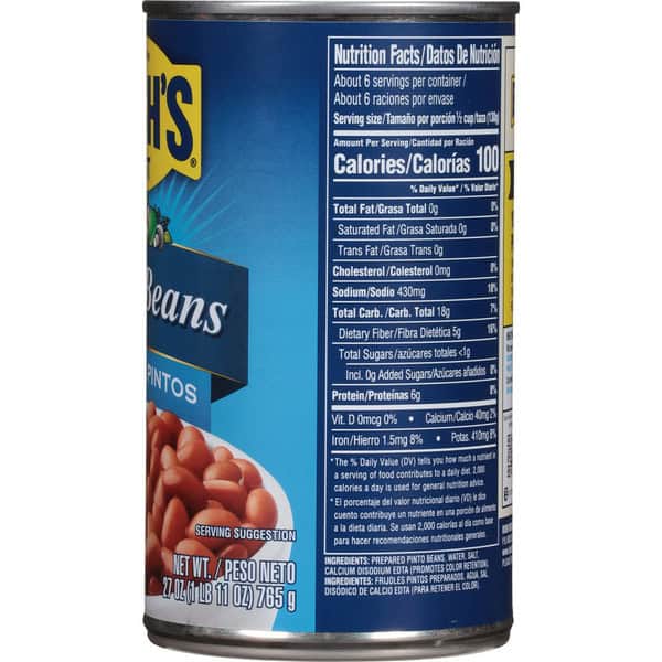 Prepared Pinto Beans, Water, Salt, Calcium Disodium Edta (promotes Color Retention).