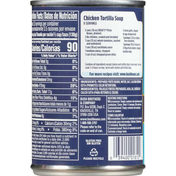 Prepared Pinto Beans, Water, Salt, Calcium Disodium Edta (promotes Color Retention).