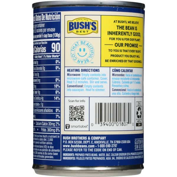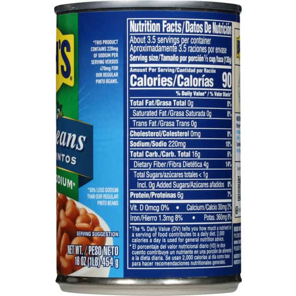 Prepared Pinto Beans, Water, Salt, Calcium Disodium Edta (promotes Color Retention).