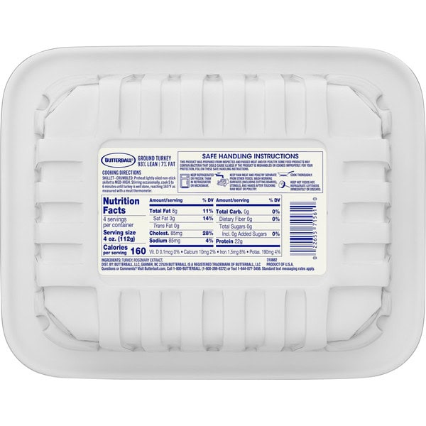 Cooking Directions: Skillet – Crumbled: Preheat lightly oiled non-stick skillet to med-high. Stirring occasionally, cook 5 to 6 minutes until turkey is well done, reaching 165 degrees F as measured with a meat thermometer.