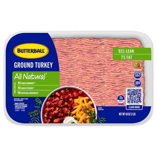 • Butterball makes mealtime easy with a family-sized package of ground turkey