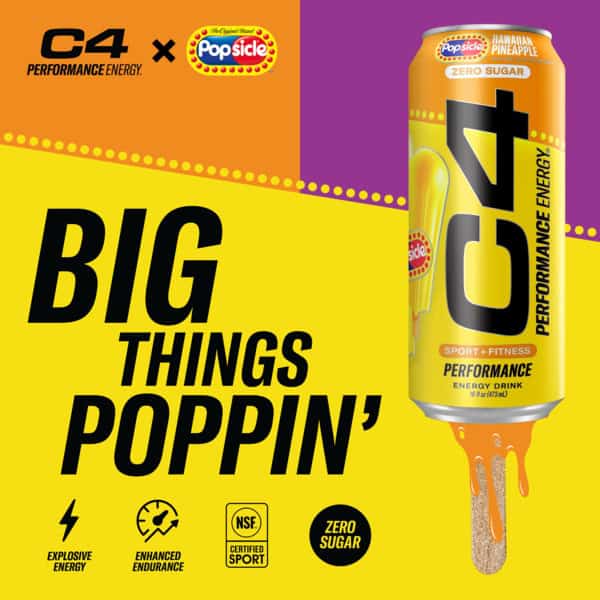 Energize with the flavors of summer all year long! With explosive energy and endurance available in 3 delicious, sugar-free flavors, C4 Performance Energy x Popsicle® transport you to energy paradise in every sip.