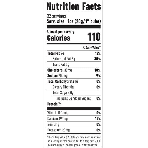 Fresh Pasteurized Milk, Cheese Cultures, Salt, Enzymes