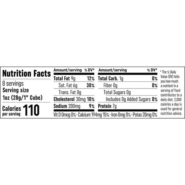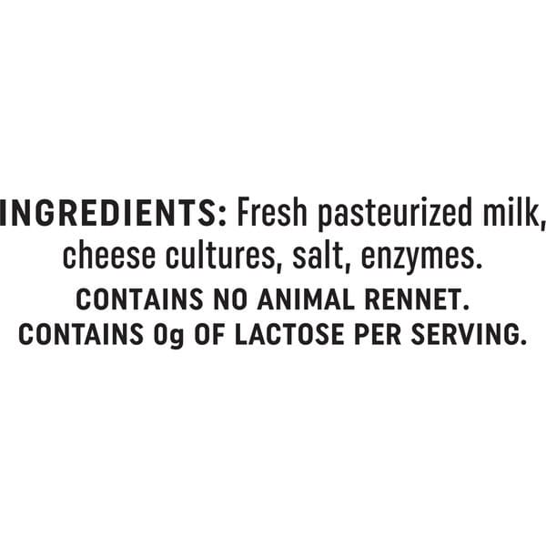 Fresh Pasteurized Milk, Cheese Cultures, Salt, Enzymes.