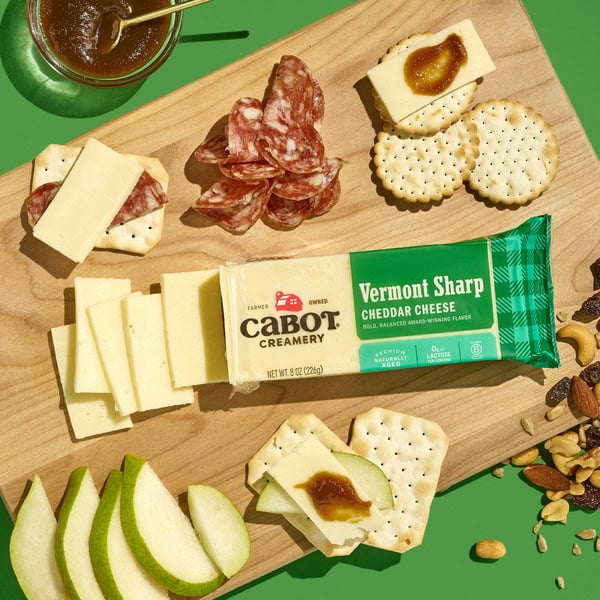 Fall in love with the traditional taste of Cabot’s 8 oz. Sharp Yellow Cheddar! An essential for any kitchen, this versatile cheese is ideal for slicing, grating, and melting. This exceptional cheddar offers a bold, balanced flavor that will make you crave more. It pairs well with everything, whether you are looking to blend it with fruits like tart apple or juicy pears, to melt it into a gourmet sauce or cheese dip, or simply to savor its distinct cheddar flavor on crackers. All Cabot cheddars contain milk and should be refrigerated.