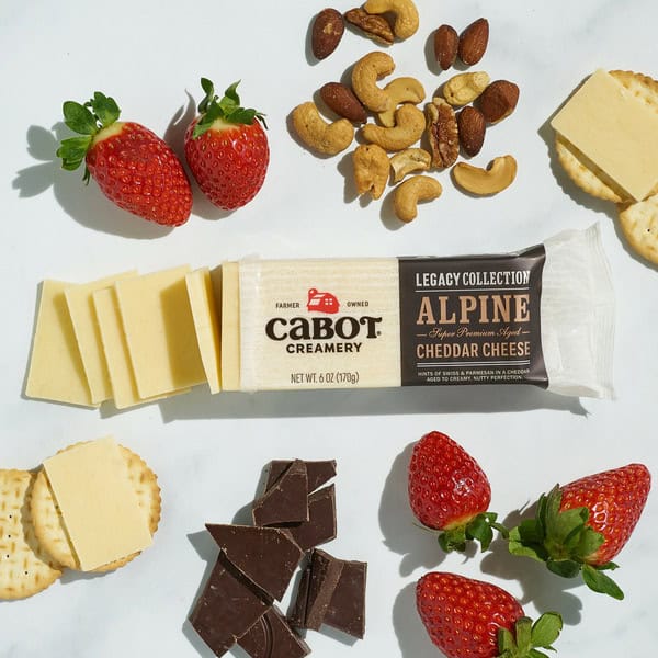 A subtle Swiss and Italian Alpine blend with a slight grana texture similar to Parmesan. At room temperature, this complex cheese will surprise and delight even the most jaded cheese aficionados with its unique flavor. We hope you will find its characteristics at once familiar and completely unique. Naturally gluten-free, with zero grams of lactose, our Alpine cheddar is perfect any way you chose to serve it. Available in 6-ounce Dairy Bars, this tasty treat is part of our unique line the Legacy Collection cheeses.