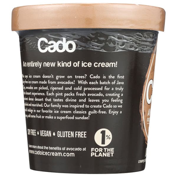 •BETTER FOR THE PLANET. Cado ice cream is Non-GMO Project Verified and Kosher certified. Cado is a Member of 1% for the Planet and donates 1% of all sales to support outdoor education, food justice and farm to school programs.