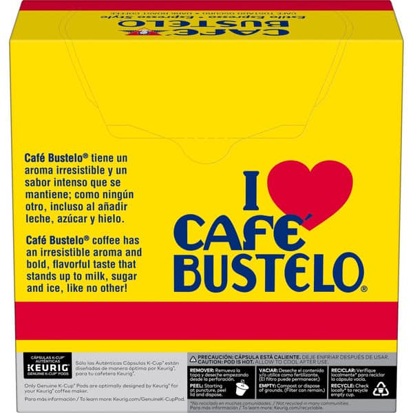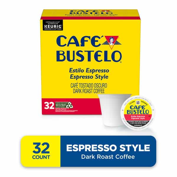 Featuring a full-bodied, bold flavor, Café Bustelo Espresso Style K-Cup Pods offer an invigorating start to your morning. This dark roast is perfectly roasted to deliver a rich, intense flavor sip after sip. Ideal for creating mixed coffee beverages such as cortaditos or café con leche, the coffee stands up to milk and sugar exceptionally well and retains its rich flavor even after mixing. It comes packaged in convenient K-Cup pods that make brewing fast and effortless.