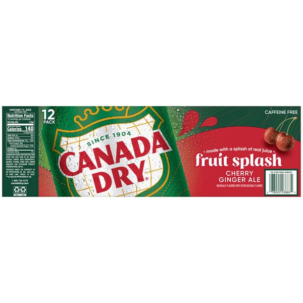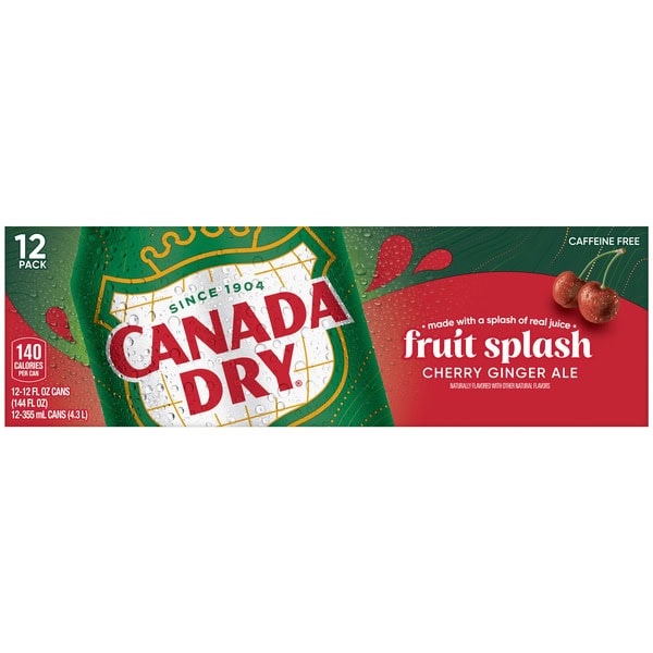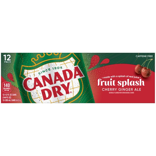Canada Dry Fruit Splash Cherry Ginger Ale Soda, 12 fl oz cans, 12 pack